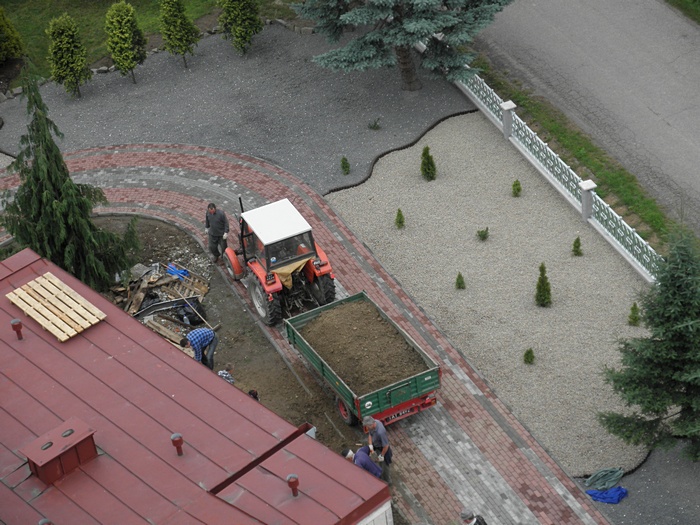 Urządzanie dziedzińca od strony drogi wjazdowej na plebanię