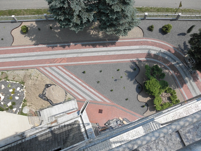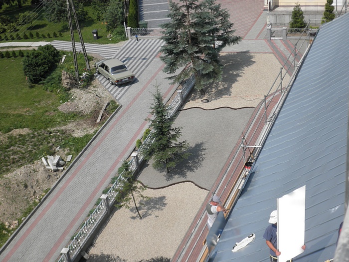 Dziedziniec kościelny widziany z kościelnej wieży 2010